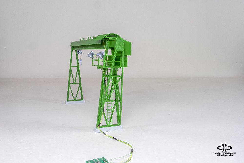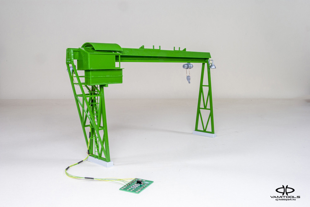 Gantry crane. The length between the two pillars is 171mm. The height until the hoist is 83mm.
